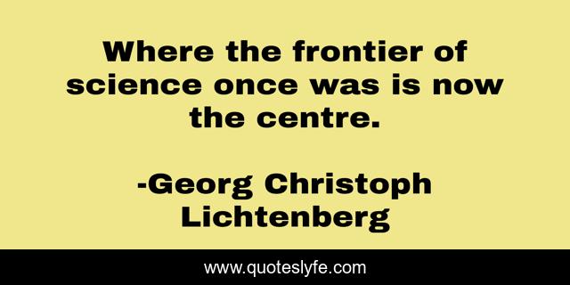 This page presents the quote "Where the frontier of science once was is now the centre.". Author of this quote is Georg Christoph Lichtenberg. This quote is about science, centre, frontier,.