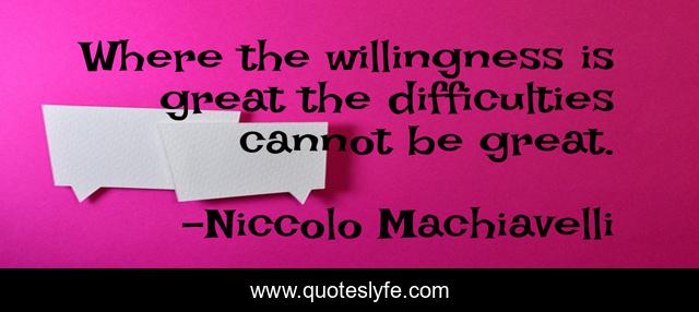 "Niccolo Machiavelli Quotes." Quoteslyfe.com, 2025. Fri. 05 Dec. 2025. <https://www.quoteslyfe.com/quote/Where-the-willingness-is-great-the-difficulties-271078>.