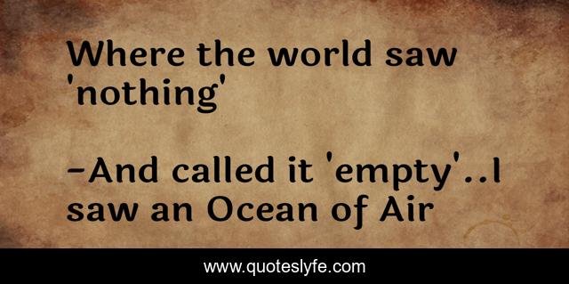 "And called it 'empty'..I saw an Ocean of Air Quotes." Quoteslyfe.com, 2025. Mon. 08 Dec. 2025. <https://www.quoteslyfe.com/quote/Where-the-world-saw-nothing-92803>.