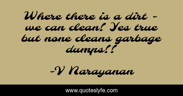 This page presents the quote "Where there is a dirt - we can clean! Yes true but none cleans garbage dumps!!". Author of this quote is V Narayanan. .