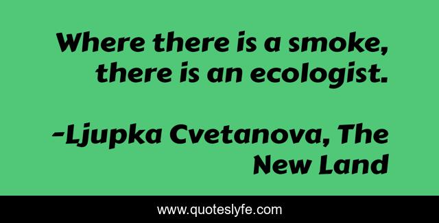 This page presents the quote "Where there is a smoke, there is an ecologist.". Author of this quote is Ljupka Cvetanova, The New Land. This quote is about preserve, ecologist, aphorism, fire, ecosystem, environment, smoke, pollution,.