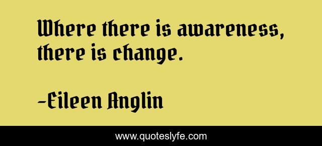 This page presents the quote "Where there is awareness, there is change.". Author of this quote is Eileen Anglin. This quote is about self-awareness, change-the-world, change-your-life, self-realization, change, change-life, awareness,.