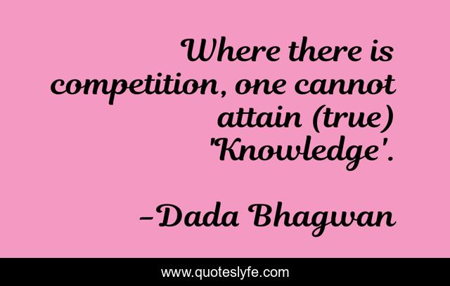 This page presents the quote "Where there is competition, one cannot attain (true) 'Knowledge'.". Author of this quote is Dada Bhagwan. This quote is about true-knowledge, spiritual, knowledge, competition,.