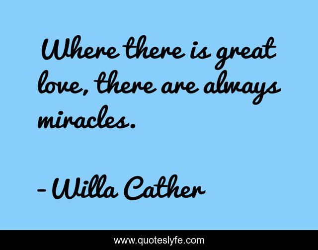 This page presents the quote "Where there is great love, there are always miracles.". Author of this quote is Willa Cather. This quote is about love, affection,.