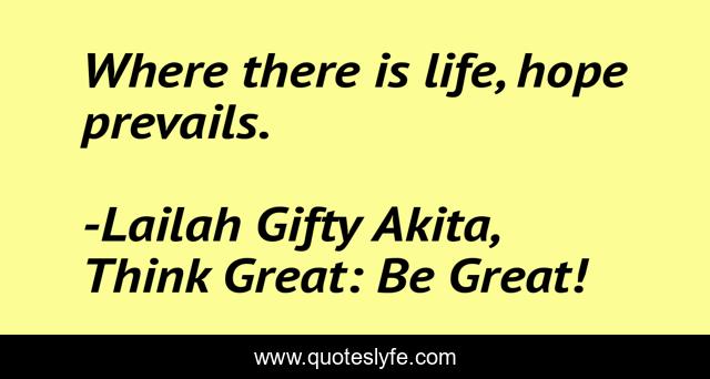"Lailah Gifty Akita, Think Great: Be Great! Quotes." Quoteslyfe.com, 2025. Mon. 08 Dec. 2025. <https://www.quoteslyfe.com/quote/Where-there-is-life-hope-prevails-85267>.