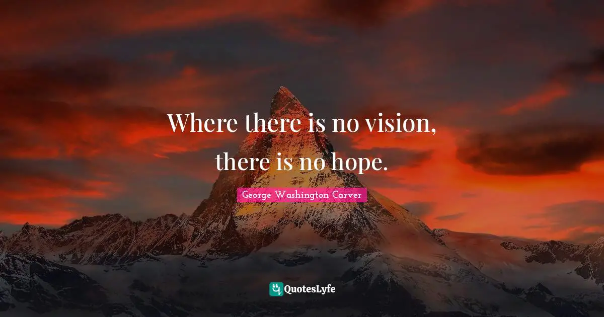 This page presents the quote "Where there is no vision, there is no hope.". Author of this quote is George Washington Carver. This quote is about leadership, vision,.