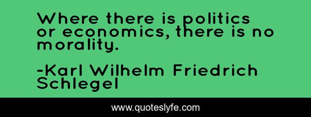 This page presents the quote "Where there is politics or economics, there is no morality.". Author of this quote is Karl Wilhelm Friedrich Schlegel. This quote is about economics, morality,.