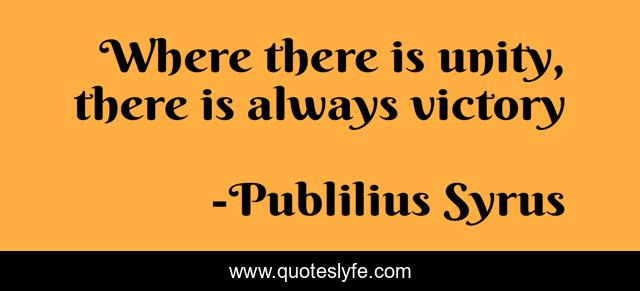 This page presents the quote "Where there is unity, there is always victory". Author of this quote is Publilius Syrus. This quote is about unity, victory,.