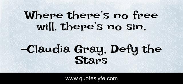 This page presents the quote "Where there’s no free will, there’s no sin.". Author of this quote is Claudia Gray, Defy the Stars. This quote is about free-will, sin,.