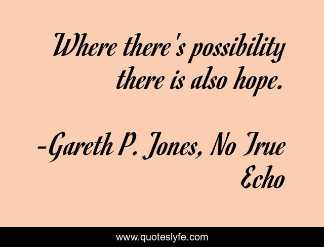This page presents the quote "Where there's possibility there is also hope.". Author of this quote is Gareth P. Jones, No True Echo. This quote is about hope, possibility,.
