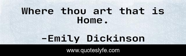 This page presents the quote "Where thou art that is Home.". Author of this quote is Emily Dickinson. .