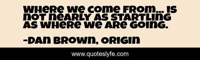 This page presents the quote "Where we come from... is not nearly as startling as where we are going.". Author of this quote is Dan Brown, Origin. This quote is about suspense-thriller, thriller,.