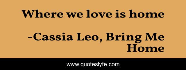 "Cassia Leo, Bring Me Home Quotes." Quoteslyfe.com, 2025. Mon. 08 Dec. 2025. <https://www.quoteslyfe.com/quote/Where-we-love-is-home-182775>.