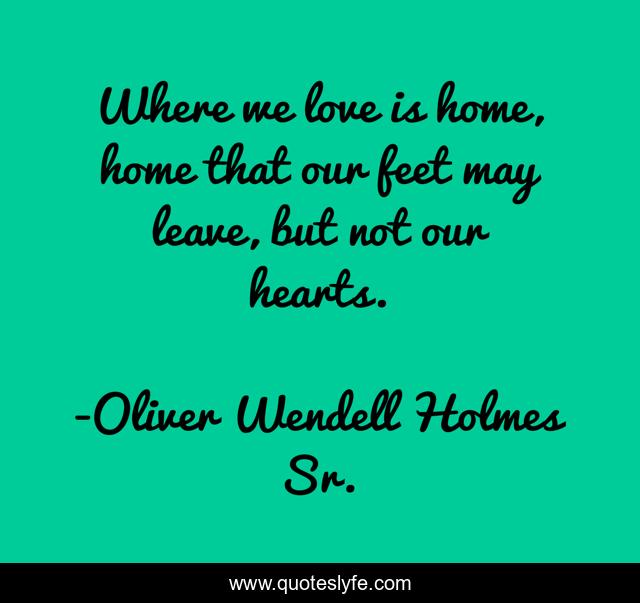 This page presents the quote "Where we love is home, home that our feet may leave, but not our hearts.". Author of this quote is Oliver Wendell Holmes Sr.. .