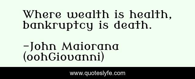 This page presents the quote "Where wealth is health, bankruptcy is death.". Author of this quote is John Maiorana (oohGiovanni). This quote is about death, bankrupt, healthy-diet, healthy-living, health, inspirational, wealthy, enthusiasm, bankruptcy,.