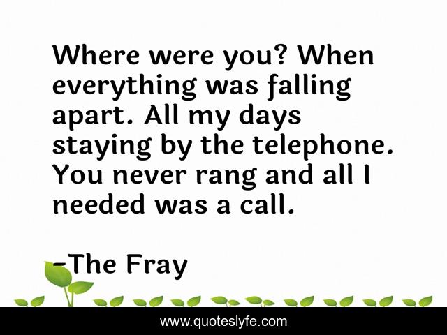 This page presents the quote "Where were you? When everything was falling apart. All my days staying by the telephone. You never rang and all I needed was a call.". Author of this quote is The Fray. .