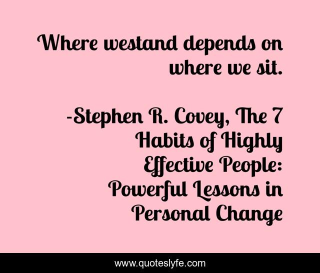 "Stephen R. Covey, The 7 Habits of Highly Effective People: Powerful Lessons in Personal Change Quotes." Quoteslyfe.com, 2025. Fri. 05 Dec. 2025. <https://www.quoteslyfe.com/quote/Where-westand-depends-on-where-we-sit-106166>.