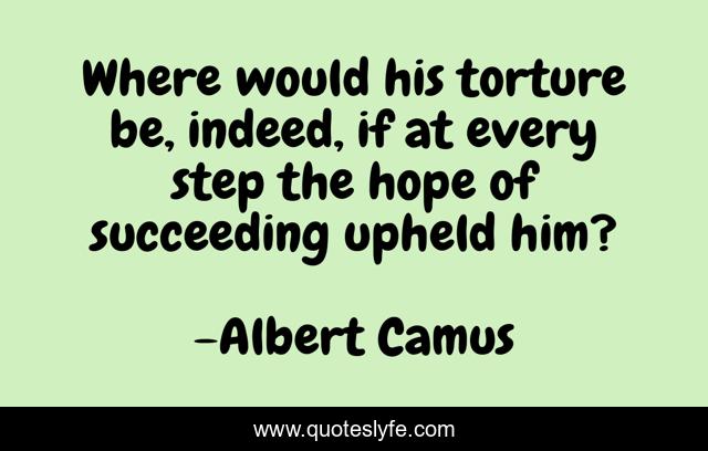 This page presents the quote "Where would his torture be, indeed, if at every step the hope of succeeding upheld him?". Author of this quote is Albert Camus. This quote is about perseverance, sisyphus, success,.