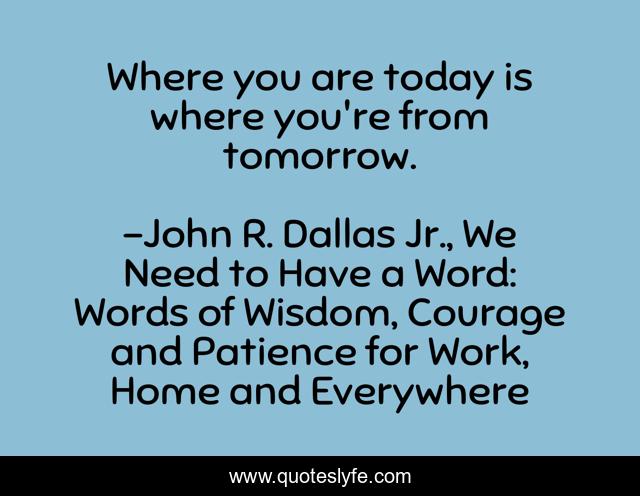"John R. Dallas Jr., We Need to Have a Word: Words of Wisdom, Courage and Patience for Work, Home and Everywhere Quotes." Quoteslyfe.com, 2025. Sat. 06 Dec. 2025. <https://www.quoteslyfe.com/quote/Where-you-are-today-is-where-you-181433>.
