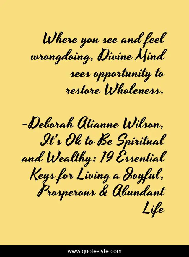 "Deborah Atianne Wilson, It's Ok to Be Spiritual and Wealthy: 19 Essential Keys for Living a Joyful, Prosperous & Abundant Life Quotes." Quoteslyfe.com, 2025. Fri. 05 Dec. 2025. <https://www.quoteslyfe.com/quote/Where-you-see-and-feel-wrongdoing-Divine-122189>.