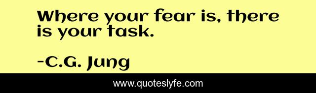 This page presents the quote "Where your fear is, there is your task.". Author of this quote is C.G. Jung. This quote is about fear, dreams, personal-growth,.