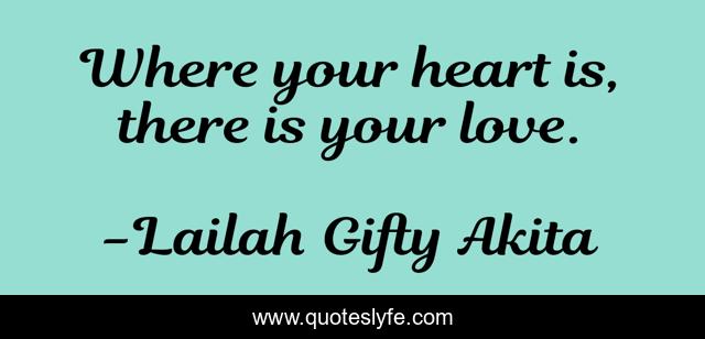 This page presents the quote "Where your heart is, there is your love.". Author of this quote is Lailah Gifty Akita. This quote is about lovely-things, lovers, love, love-at-first-sight, lovely-way-with-words, lovely-writing, love-story, lovely, affection,.
