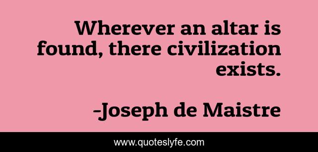 "Joseph de Maistre Quotes." Quoteslyfe.com, 2025. Fri. 05 Dec. 2025. <https://www.quoteslyfe.com/quote/Wherever-an-altar-is-found-there-civilization-198522>.