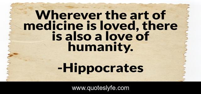 This page presents the quote "Wherever the art of medicine is loved, there is also a love of humanity.". Author of this quote is Hippocrates. This quote is about medicine, art, humanity,.