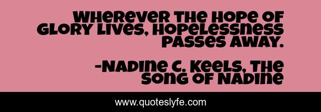 "Nadine C. Keels, The Song of Nadine Quotes." Quoteslyfe.com, 2025. Mon. 08 Dec. 2025. <https://www.quoteslyfe.com/quote/Wherever-the-hope-of-glory-lives-hopelessness-19559>.
