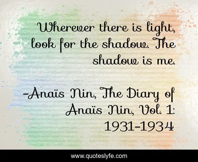 "Anaïs Nin, The Diary of Anaïs Nin, Vol. 1: 1931-1934 Quotes." Quoteslyfe.com, 2025. Fri. 05 Dec. 2025. <https://www.quoteslyfe.com/quote/Wherever-there-is-light-look-for-the-198114>.