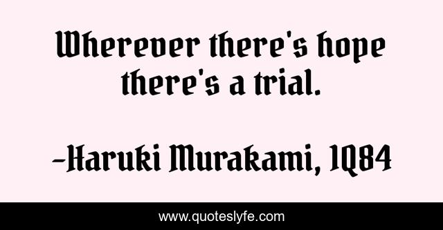 This page presents the quote "Wherever there's hope there's a trial.". Author of this quote is Haruki Murakami, 1Q84. .
