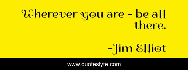 "Jim Elliot Quotes." Quoteslyfe.com, 2025. Sat. 06 Dec. 2025. <https://www.quoteslyfe.com/quote/Wherever-you-are-be-all-there-320175>.