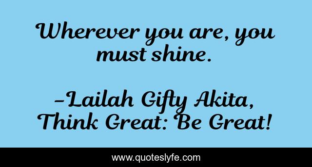 "Lailah Gifty Akita, Think Great: Be Great! Quotes." Quoteslyfe.com, 2025. Sat. 06 Dec. 2025. <https://www.quoteslyfe.com/quote/Wherever-you-are-you-must-shine-172879>.
