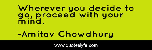 This page presents the quote "Wherever you decide to go, proceed with your mind.". Author of this quote is Amitav Chowdhury. This quote is about quote, mindfulness, decisions, consciousness, spirituality,.
