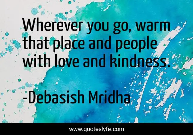 This page presents the quote "Wherever you go, warm that place and people with love and kindness.". Author of this quote is Debasish Mridha. This quote is about life, love, knowledge, inspirational, intelligence, philosophy, wisdom, quotes, affection,.