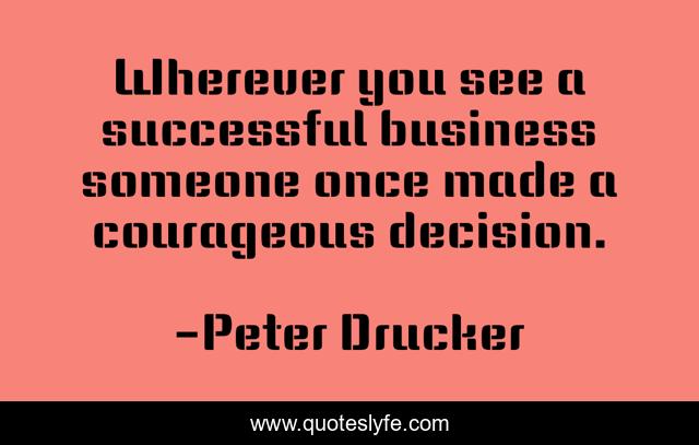 This page presents the quote "Wherever you see a successful business someone once made a courageous decision.". Author of this quote is Peter Drucker. .