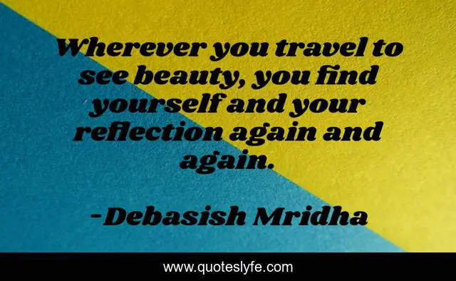 This page presents the quote "Wherever you travel to see beauty, you find yourself and your reflection again and again.". Author of this quote is Debasish Mridha. This quote is about life, love, knowledge, inspirational, intelligence, philosophy, wisdom, quotes, affection,.