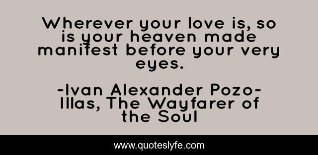This page presents the quote "Wherever your love is, so is your heaven made manifest before your very eyes.". Author of this quote is Ivan Alexander Pozo-Illas, The Wayfarer of the Soul. This quote is about love, spiritual-wisdom, affection,.