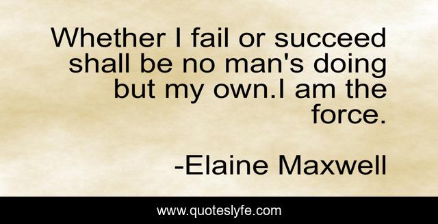 This page presents the quote "Whether I fail or succeed shall be no man's doing but my own.I am the force.". Author of this quote is Elaine Maxwell. This quote is about me, inspiring, the-7-habits, force, elaine-maxwell, book, inspiration,.