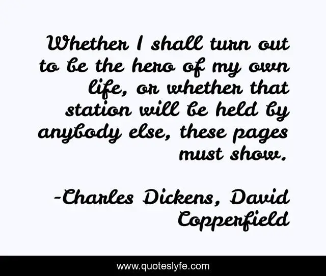 This page presents the quote "Whether I shall turn out to be the hero of my own life, or whether that station will be held by anybody else, these pages must show.". Author of this quote is Charles Dickens, David Copperfield. This quote is about opening-lines, biography,.
