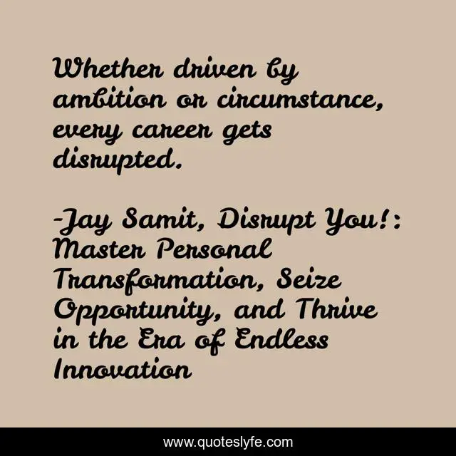"Jay Samit, Disrupt You!: Master Personal Transformation, Seize Opportunity, and Thrive in the Era of Endless Innovation Quotes." Quoteslyfe.com, 2025. Fri. 05 Dec. 2025. <https://www.quoteslyfe.com/quote/Whether-driven-by-ambition-or-circumstance-every-106510>.