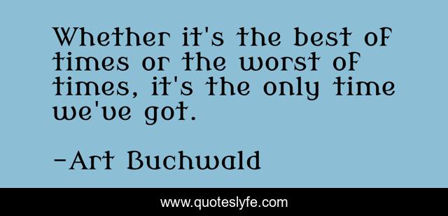 This page presents the quote "Whether it's the best of times or the worst of times, it's the only time we've got.". Author of this quote is Art Buchwald. This quote is about time, worst, times,.