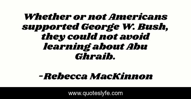 This page presents the quote "Whether or not Americans supported George W. Bush, they could not avoid learning about Abu Ghraib.". Author of this quote is Rebecca MacKinnon. This quote is about avoid, supported, bush,.