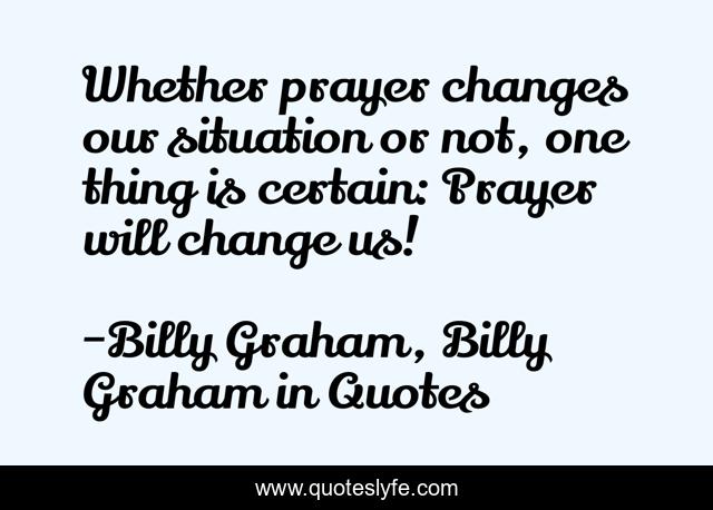 "Billy Graham, Billy Graham in Quotes Quotes." Quoteslyfe.com, 2025. Mon. 08 Dec. 2025. <https://www.quoteslyfe.com/quote/Whether-prayer-changes-our-situation-or-not-114800>.