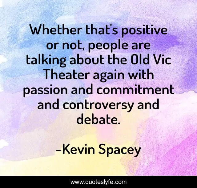 This page presents the quote "Whether that's positive or not, people are talking about the Old Vic Theater again with passion and commitment and controversy and debate.". Author of this quote is Kevin Spacey. This quote is about passion, commitment, people,.