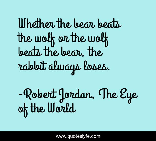 "Robert Jordan, The Eye of the World Quotes." Quoteslyfe.com, 2025. Sun. 07 Dec. 2025. <https://www.quoteslyfe.com/quote/Whether-the-bear-beats-the-wolf-or-251499>.