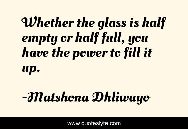 "Matshona Dhliwayo Quotes." Quoteslyfe.com, 2025. Fri. 05 Dec. 2025. <https://www.quoteslyfe.com/quote/Whether-the-glass-is-half-empty-or-58271>.