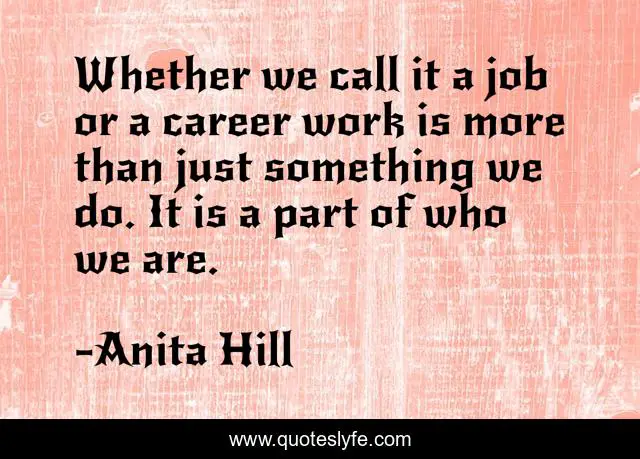 This page presents the quote "Whether we call it a job or a career work is more than just something we do. It is a part of who we are.". Author of this quote is Anita Hill. .