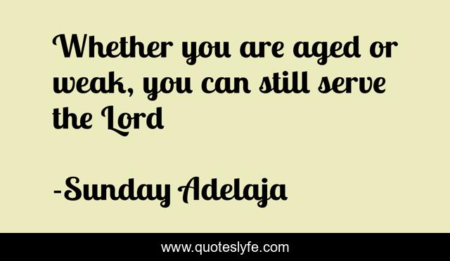 This page presents the quote "Whether you are aged or weak, you can still serve the Lord". Author of this quote is Sunday Adelaja. This quote is about life, callings, weakness, age, sevice, lord,.