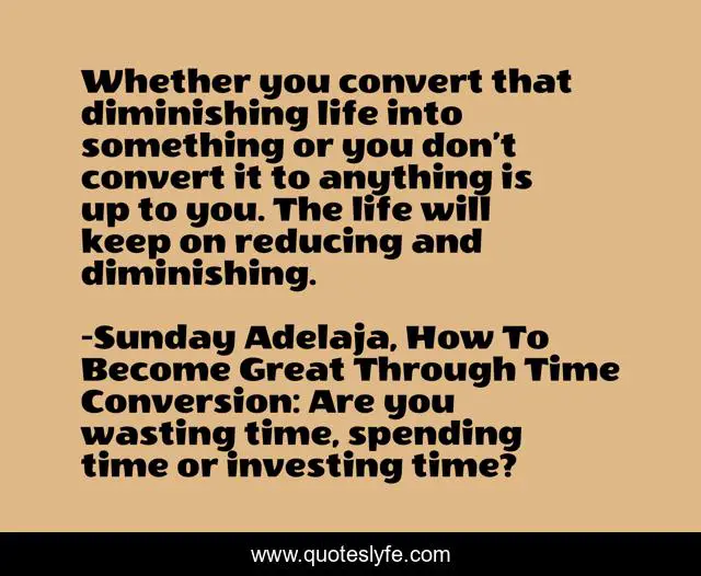 "Sunday Adelaja, How To Become Great Through Time Conversion: Are you wasting time, spending time or investing time? Quotes." Quoteslyfe.com, 2025. Fri. 05 Dec. 2025. <https://www.quoteslyfe.com/quote/Whether-you-convert-that-diminishing-life-into-39064>.
